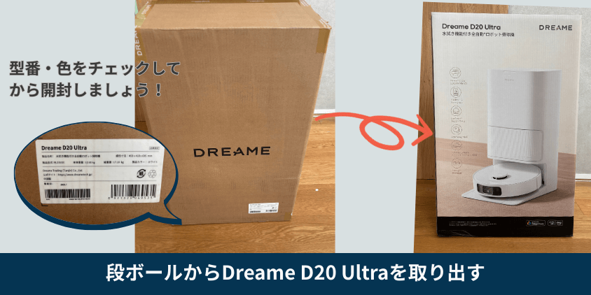 Dreame「D20 Ultra 」の開封から設置までの流れは以下の通り。